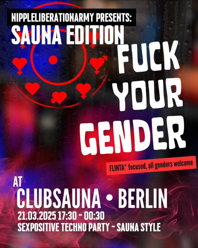 Fuck Your Gender is back on Saturday 21 March 2026 (17:30-00:30) with a collaboration with Club Sauna, the place where it all began. And yes, we’re coming home in the hottest way possible.